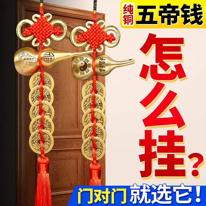五帝钱门对门葫芦挂件真品铜钱串纯铜吉祥中国结大门入户门卧室门