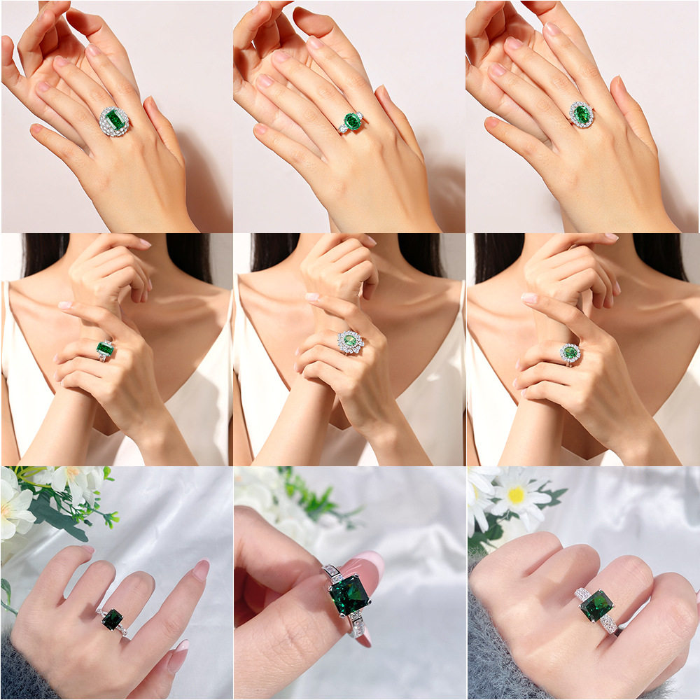 钻石之乡商丘人工钻石S925银祖母绿宝石戒指女帕拉伊巴高碳钻
