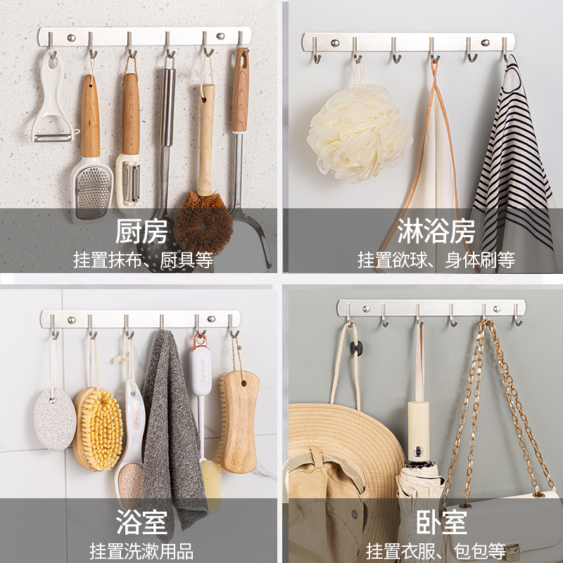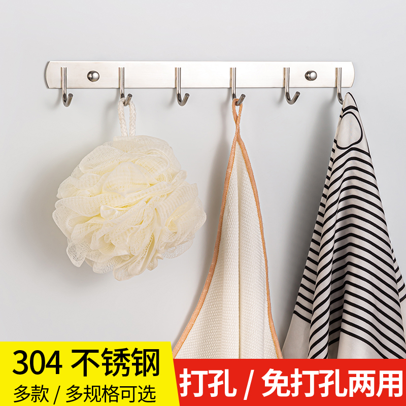 挂钩衣服排钩墙壁挂墙上卫生间厨房免打孔毛巾浴室不锈钢衣架挂勾