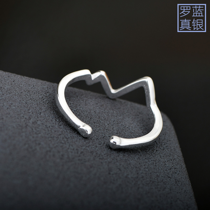999纯银戒指心动心电感应闪电情侣对戒99足银食指戒活口时尚简约