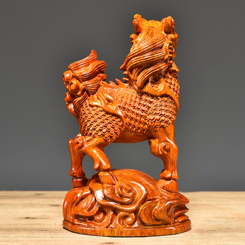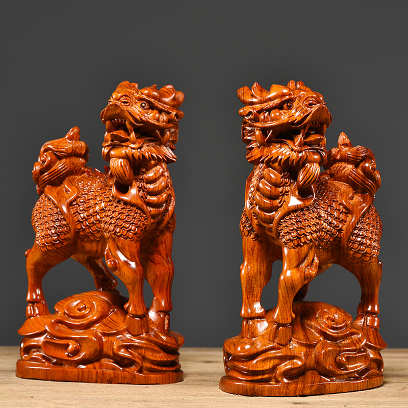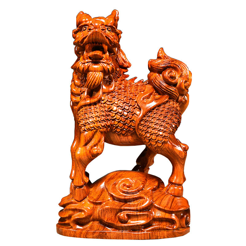 花梨木雕刻麒麟摆件m实木质家居一对客厅桌面装饰品摆设红木工艺