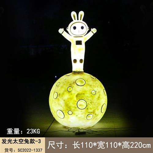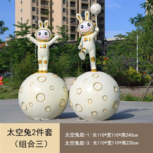 玻璃钢卡通月光兔摆件户外大型发光太空兔子雕塑学校小区商场美陈