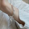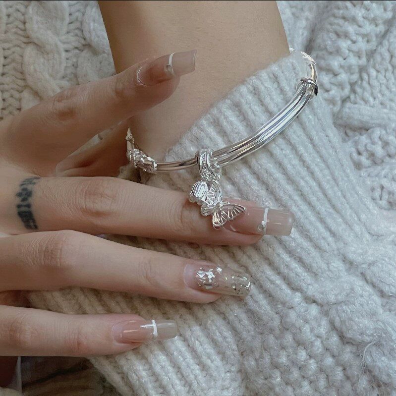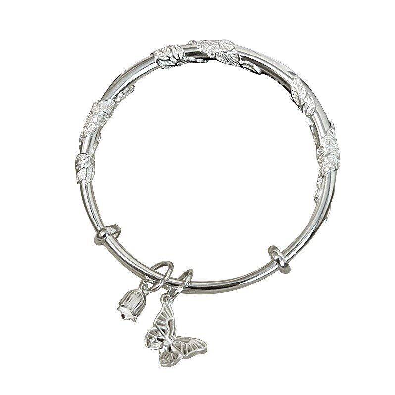 9999纯银手镯女生时尚足银繁花似锦花蕊蝴蝶年轻款实心推拉银手环