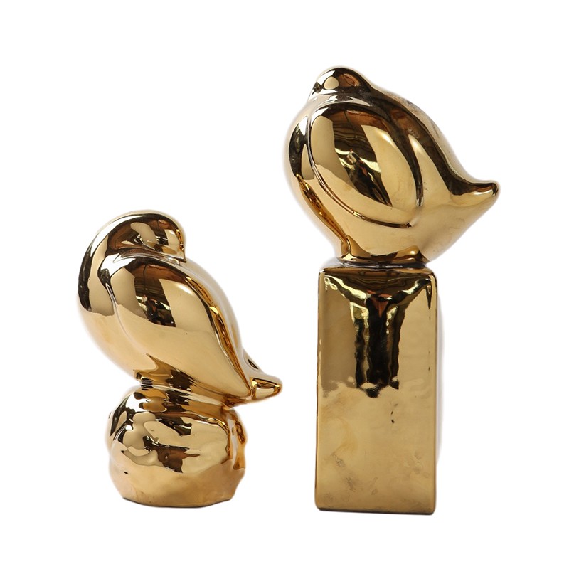 新中式黑色白色金色陶瓷小鸟动物摆件样板间书房博古架装饰品摆设