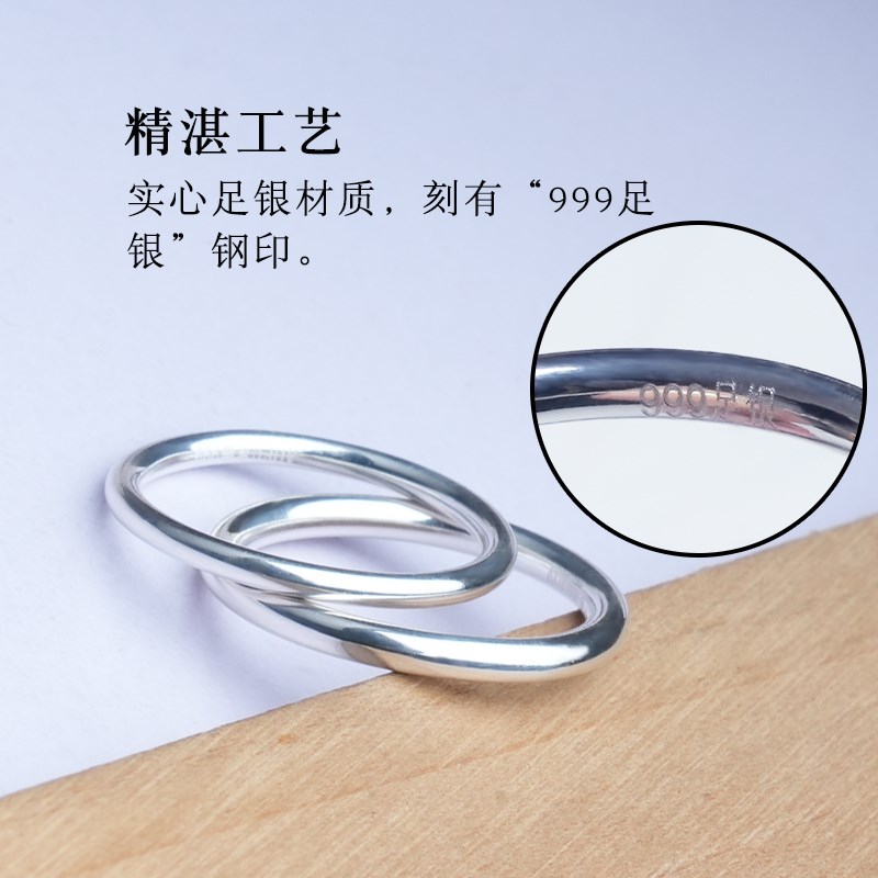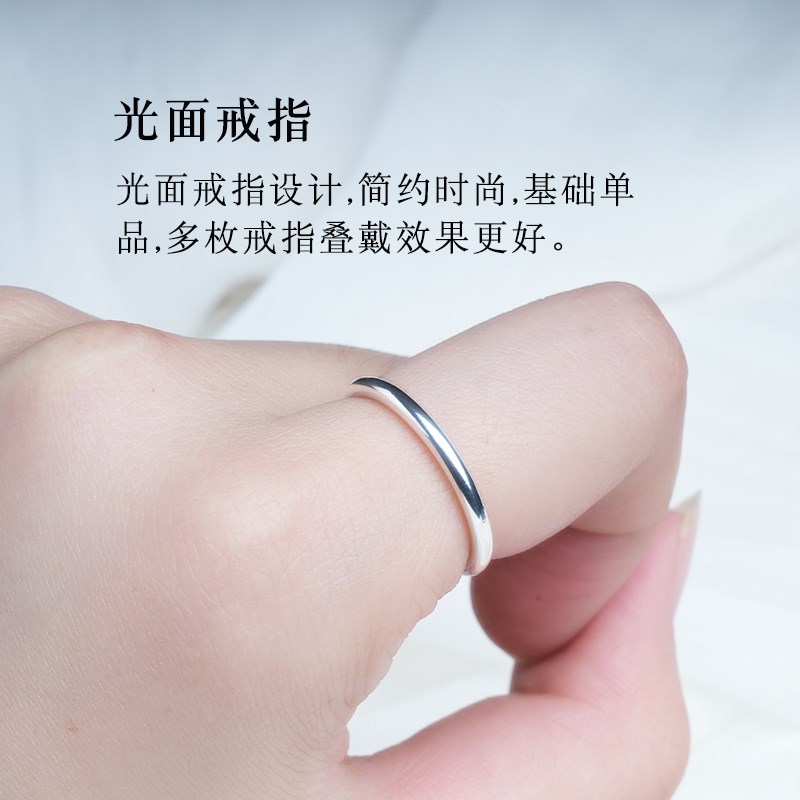 999足银戒指光面素圈细圆戒圈指环尾G戒男女情侣对戒时尚个性圆圈