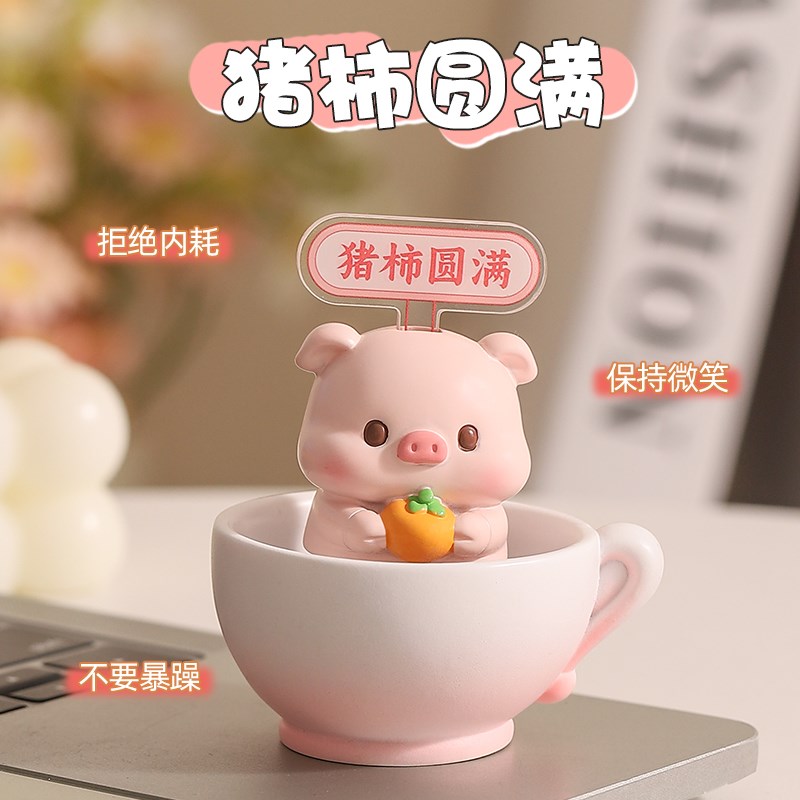 可爱小猪摇头摆件办公室桌面装饰品车内饰M品工位解压情绪稳定神