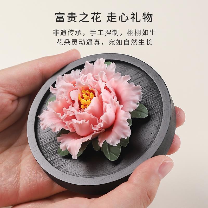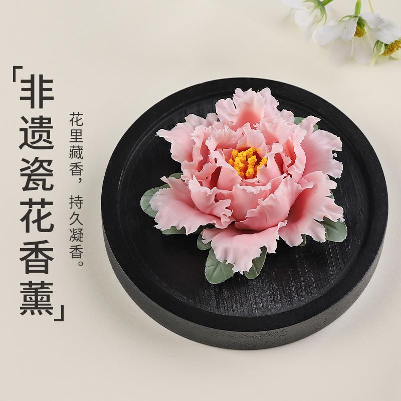 陶瓷手工牡丹瓷花香薰摆件扩香器办公室桌面装饰生日礼物送女朋友