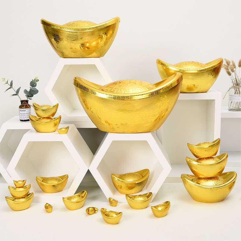 仿真金元宝摆件大号元宝装饰元宝糖果盒子拍摄道具小号银元宝摆件