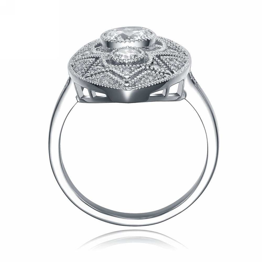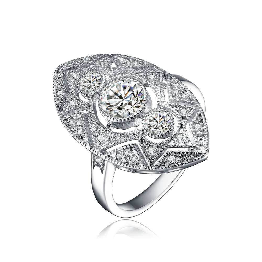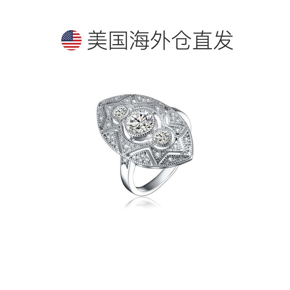 自营 GENEVIVE 纯银透明圆形立方氧化锆花丝戒指 - 银白色 美国奥