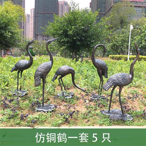 现代仿铜仙鹤雕塑户外大型玻璃钢模型草坪园林水池丹顶鹤景观摆件