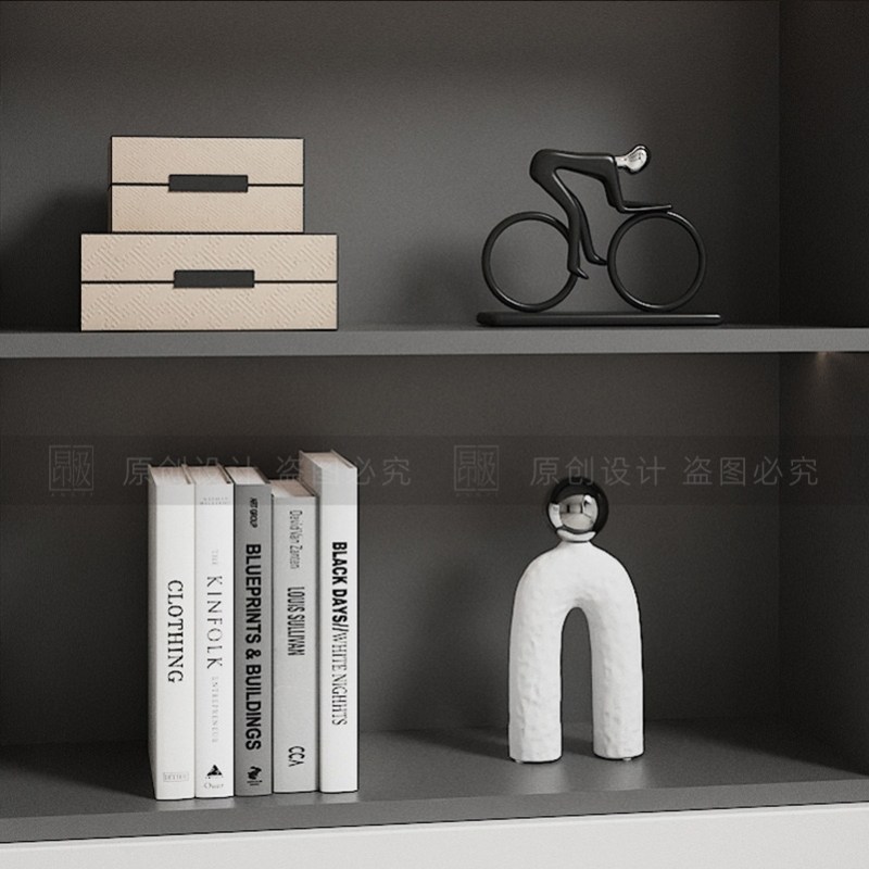 现代样板间书柜桌面摆件软装组合设计师酒店卧室房间样品屋展示中