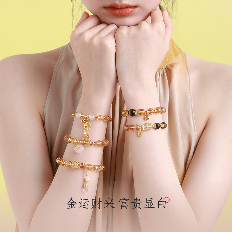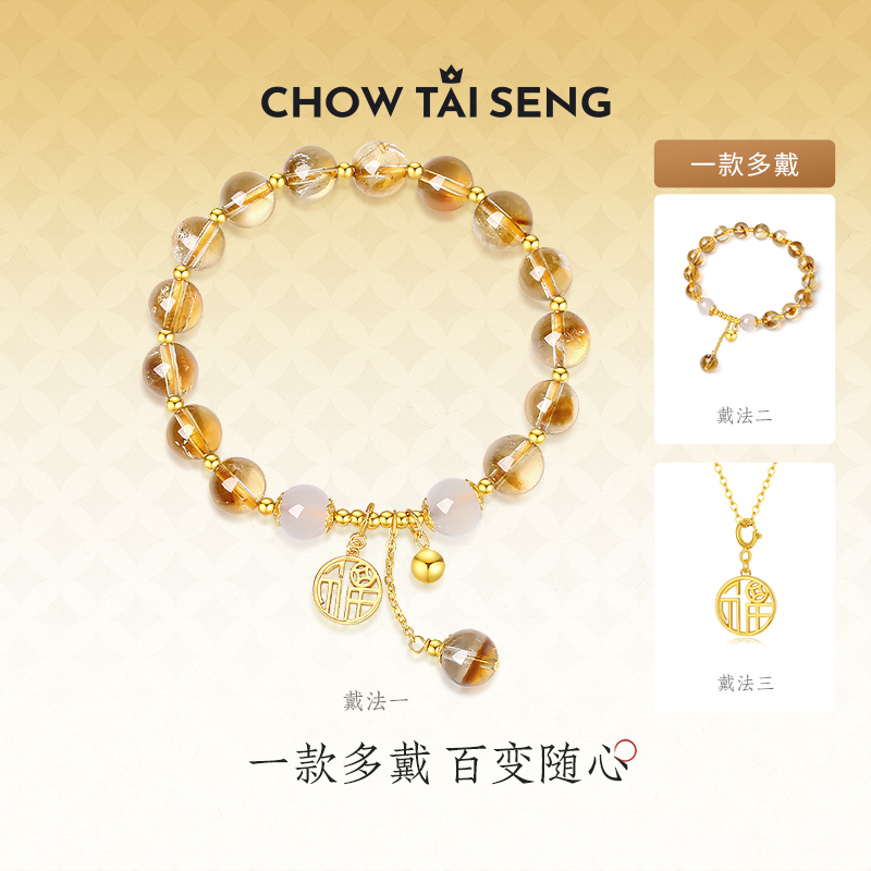 【双11预售】周大生黄水晶手串女玛瑙国风轻奢手链银送生日礼物