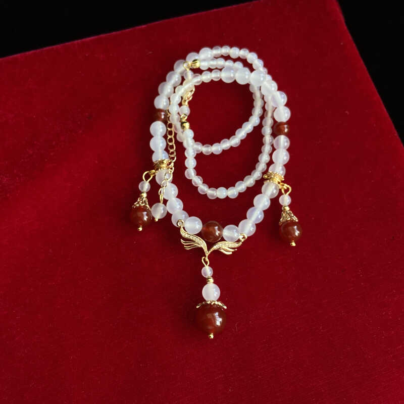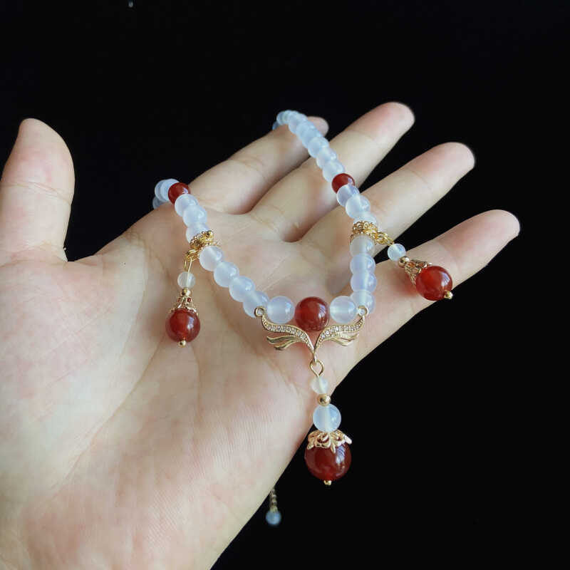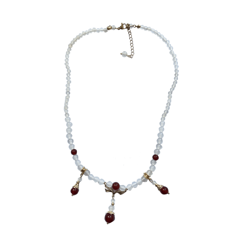 百搭软璎珞红白玛瑙项链汉服明制古风头饰女吊坠坦领古装旗袍项链