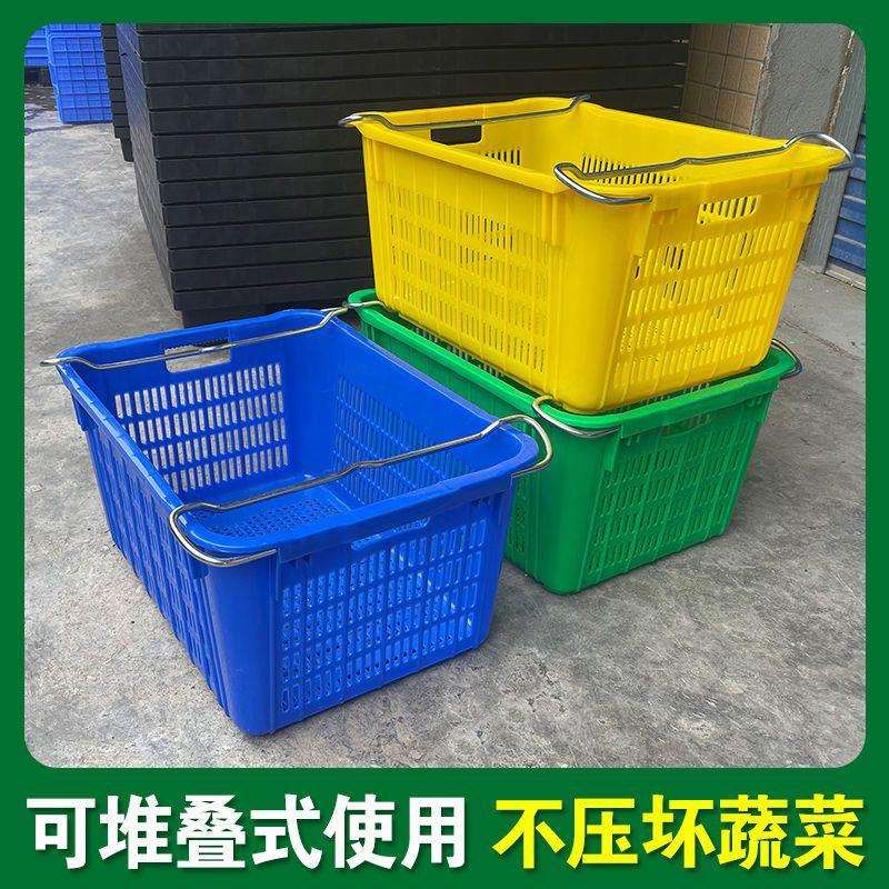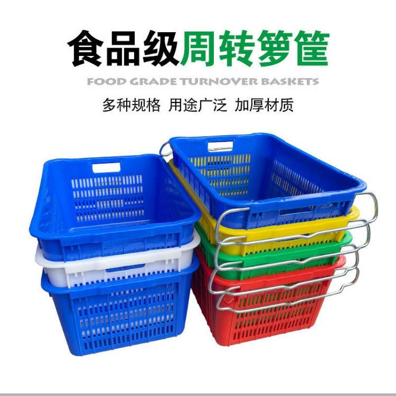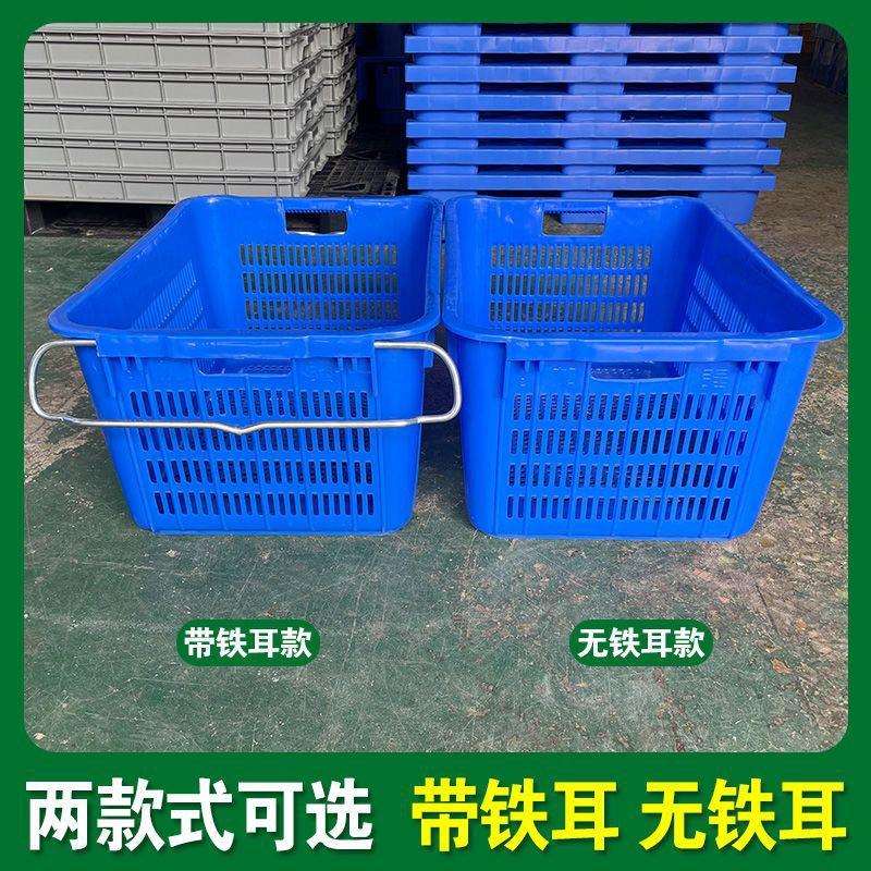 周转筐加厚塑料箩水果蔬菜箱长方形沥水带铁耳胶框水产收纳箩框