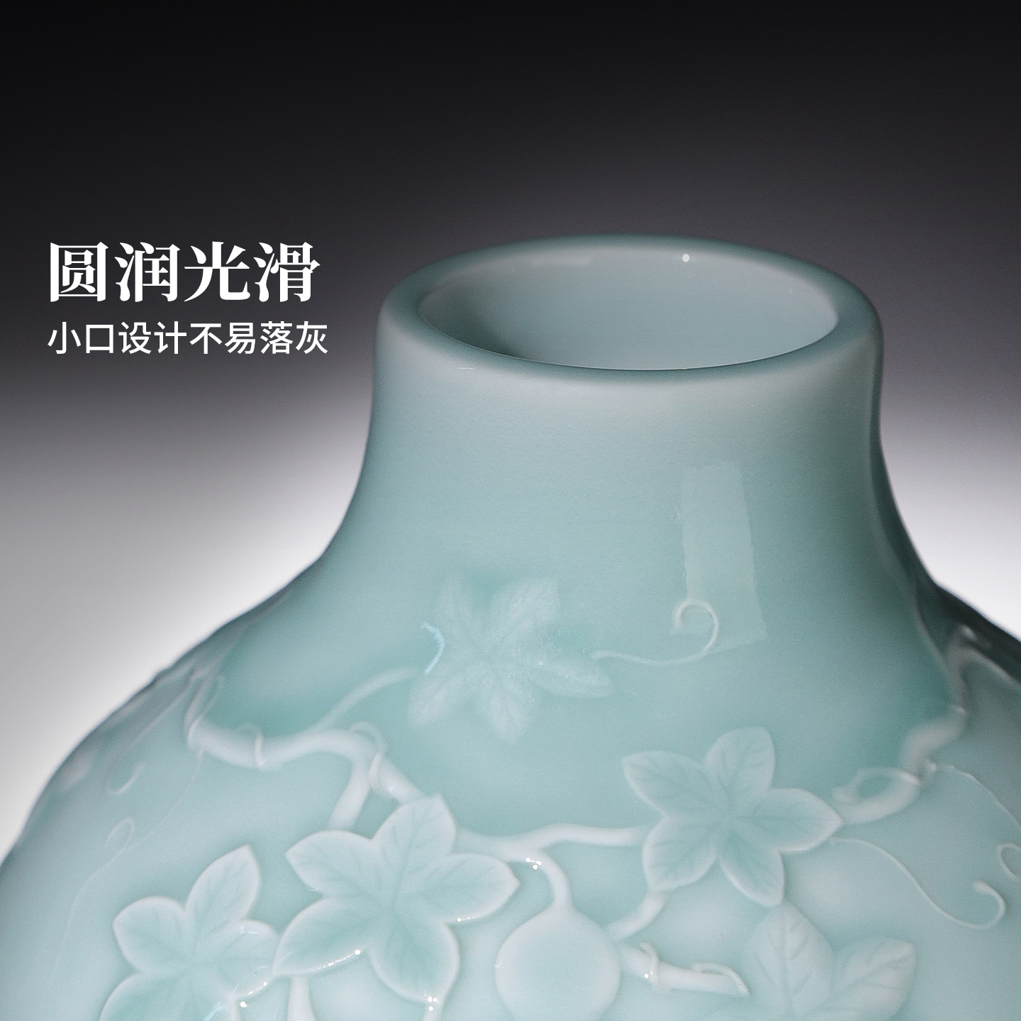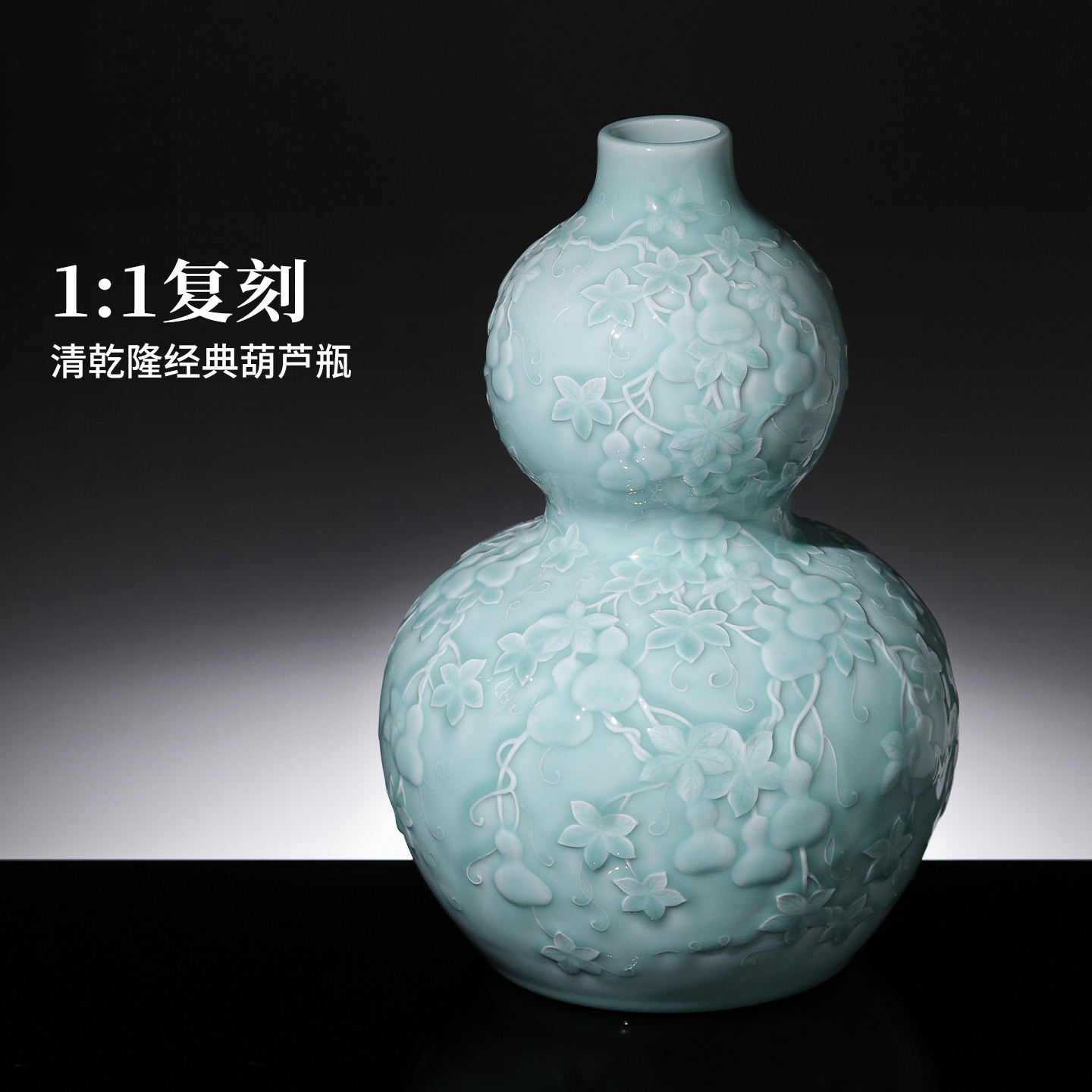 景德镇官方陶瓷葫芦瓶手工粉青釉雕刻中式乔迁送礼高端仿古摆件
