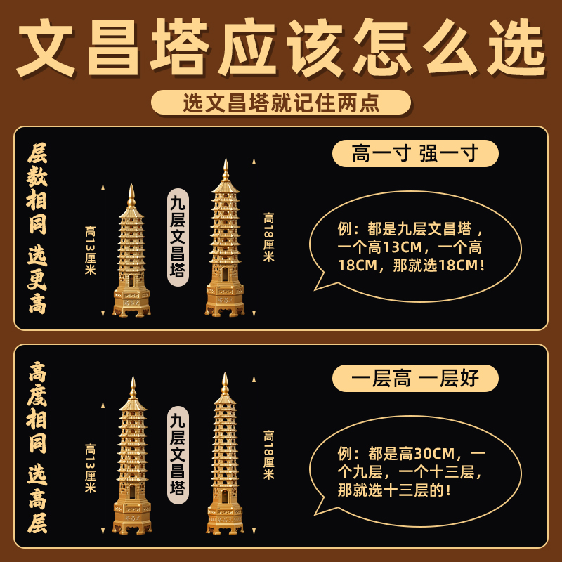 全黄铜制九层十三层文昌塔开过文运光官方旗舰店桌面装饰品小摆件