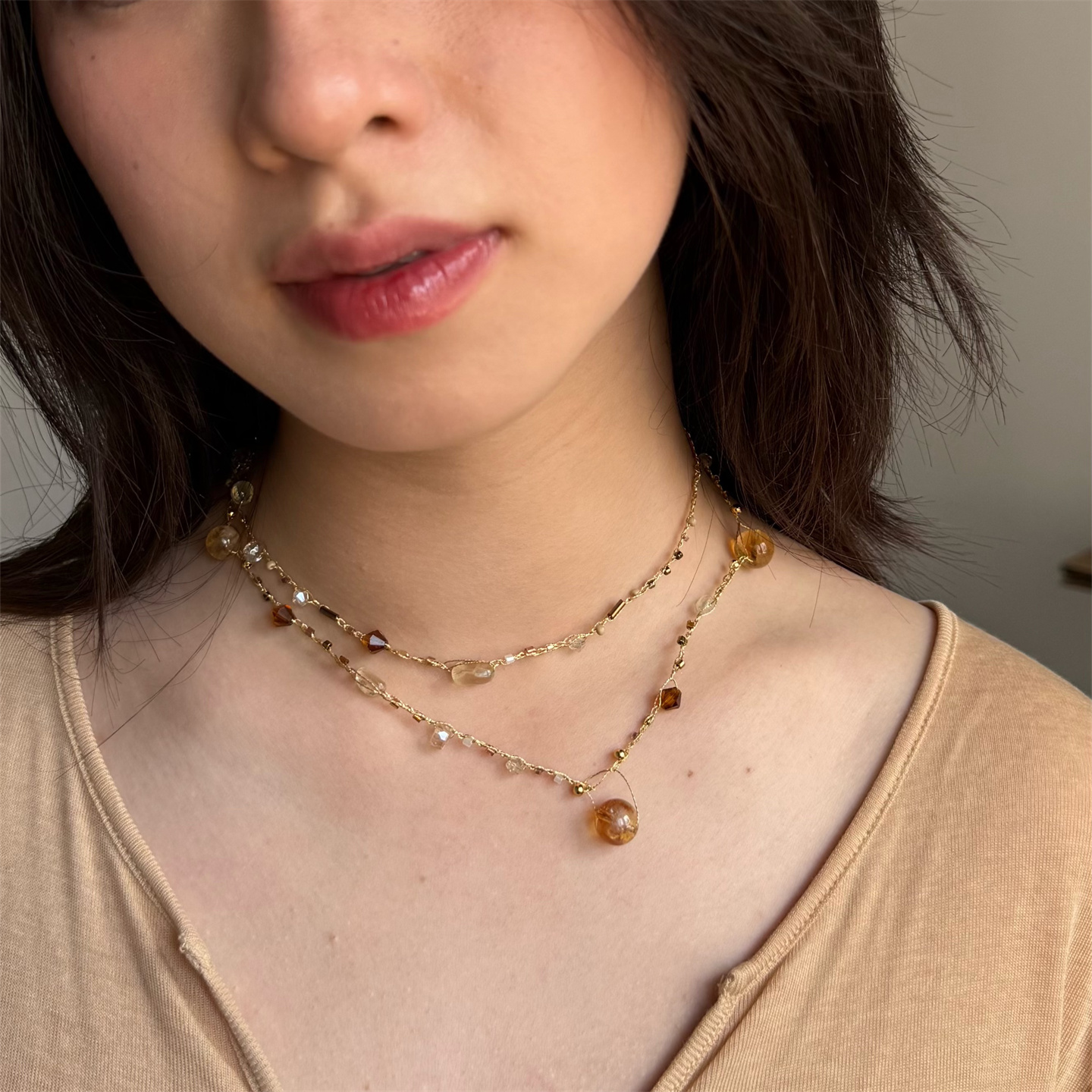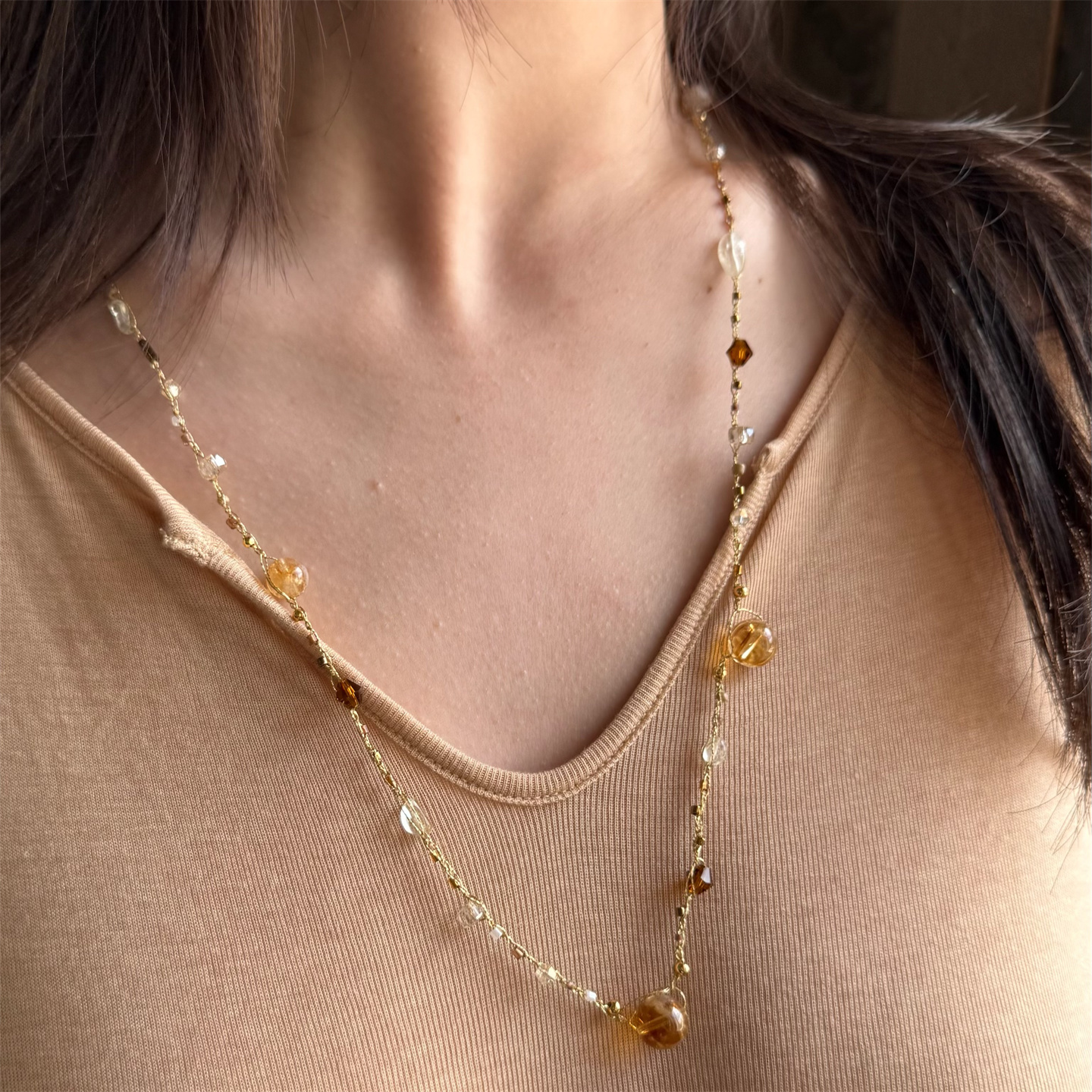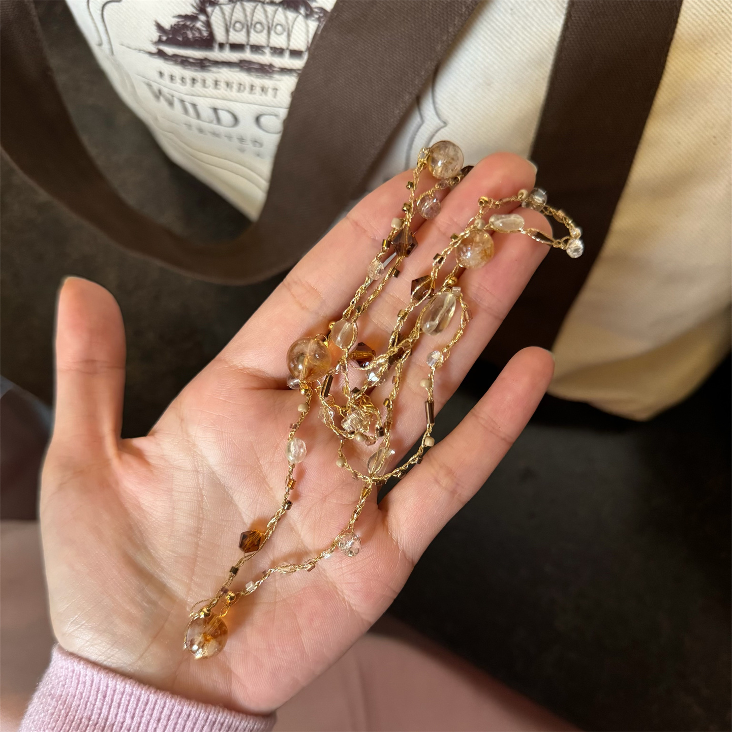 MINICYBER黄塔晶毛衣链复古风水晶串珠项链女金色小众设计感百搭