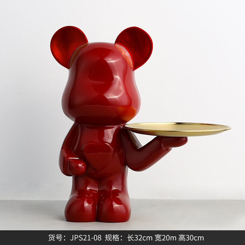 创意爱心摆件托盘熊家居客厅进门玄关钥匙收纳办公室桌面装饰礼品