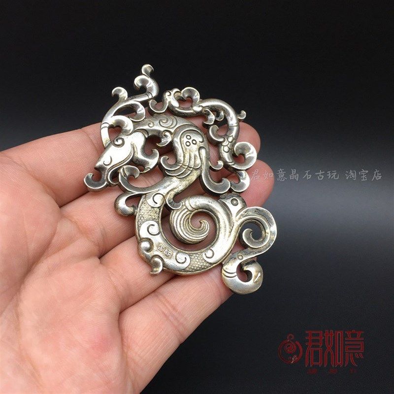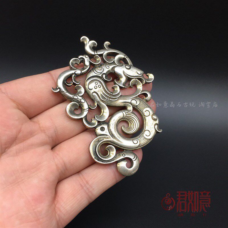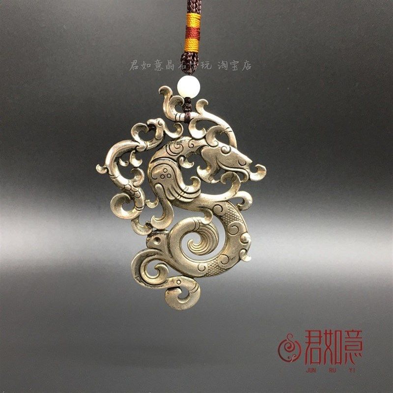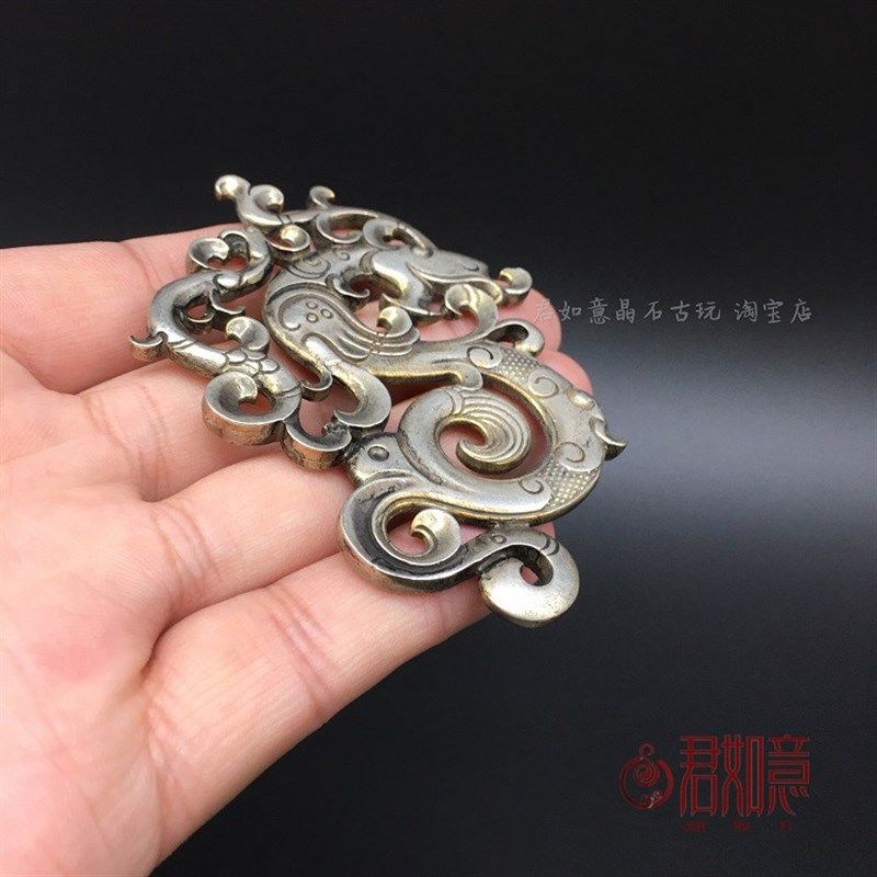速发件古工艺白铜貔貅图把挂仿铜雕件腾件 腰牌古玩铜器收藏