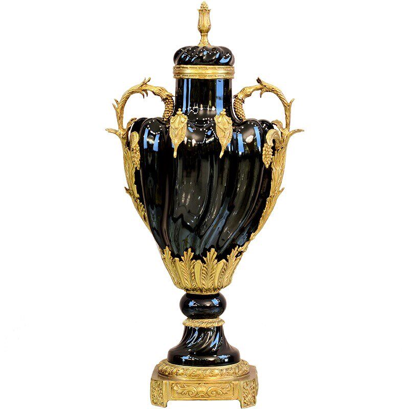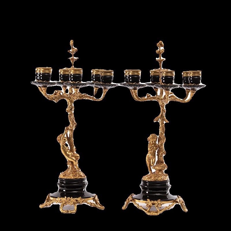 美式黑色陶瓷配铜玄关装饰摆件欧式古典样板台灯烛台座钟装饰品