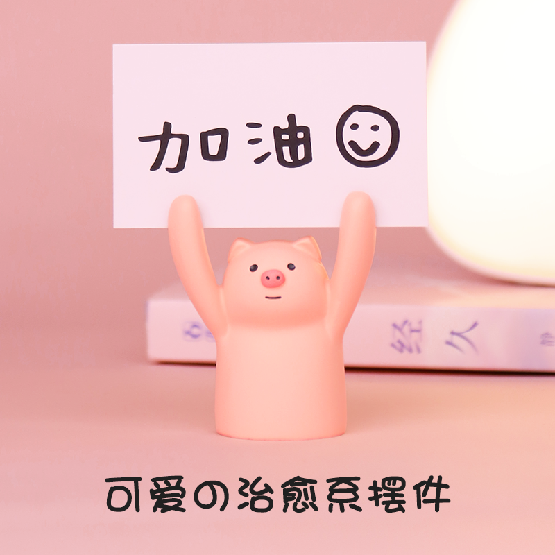 创意卡通可爱少女心ins举牌小猪便签夹摆件立式桌面留言夹照片夹
