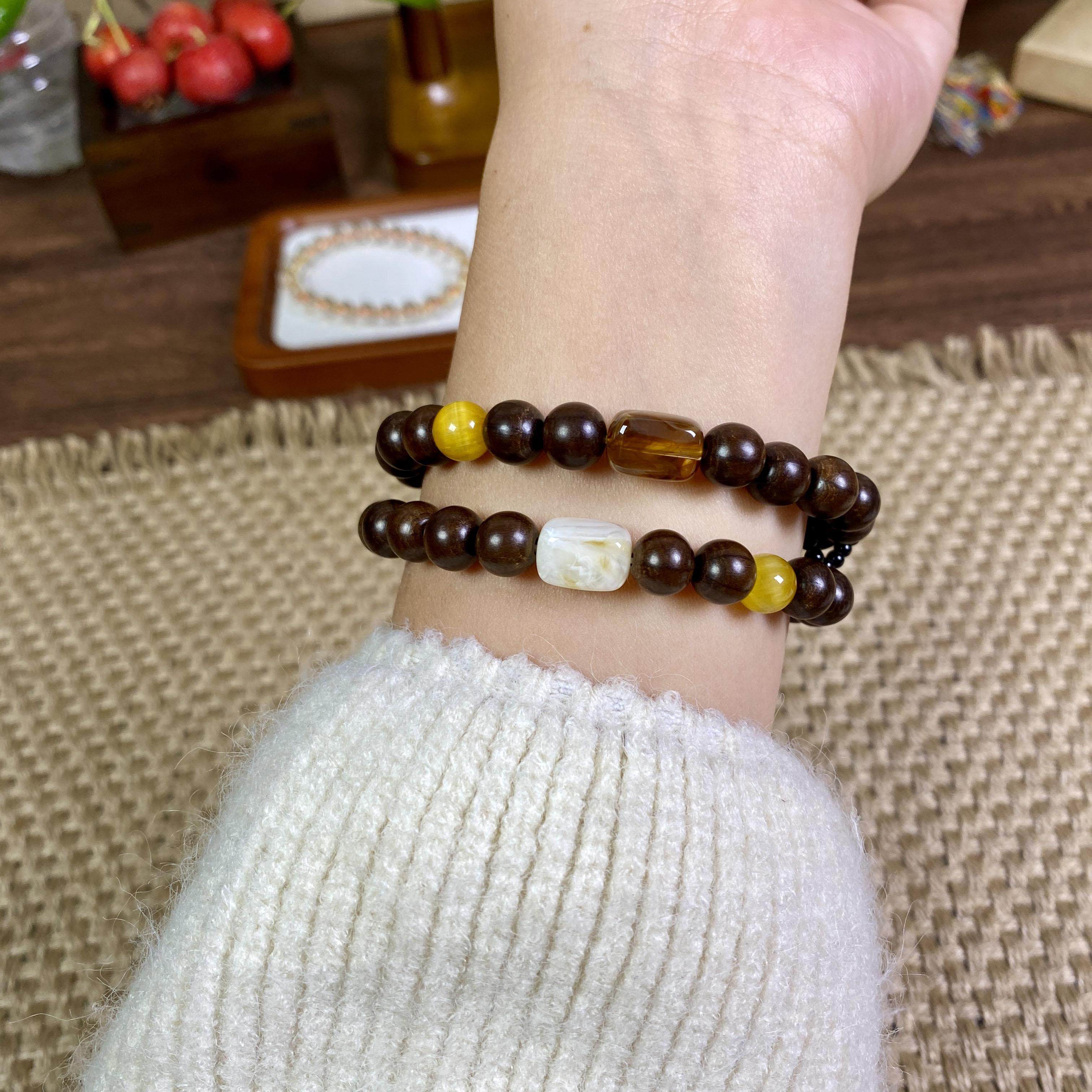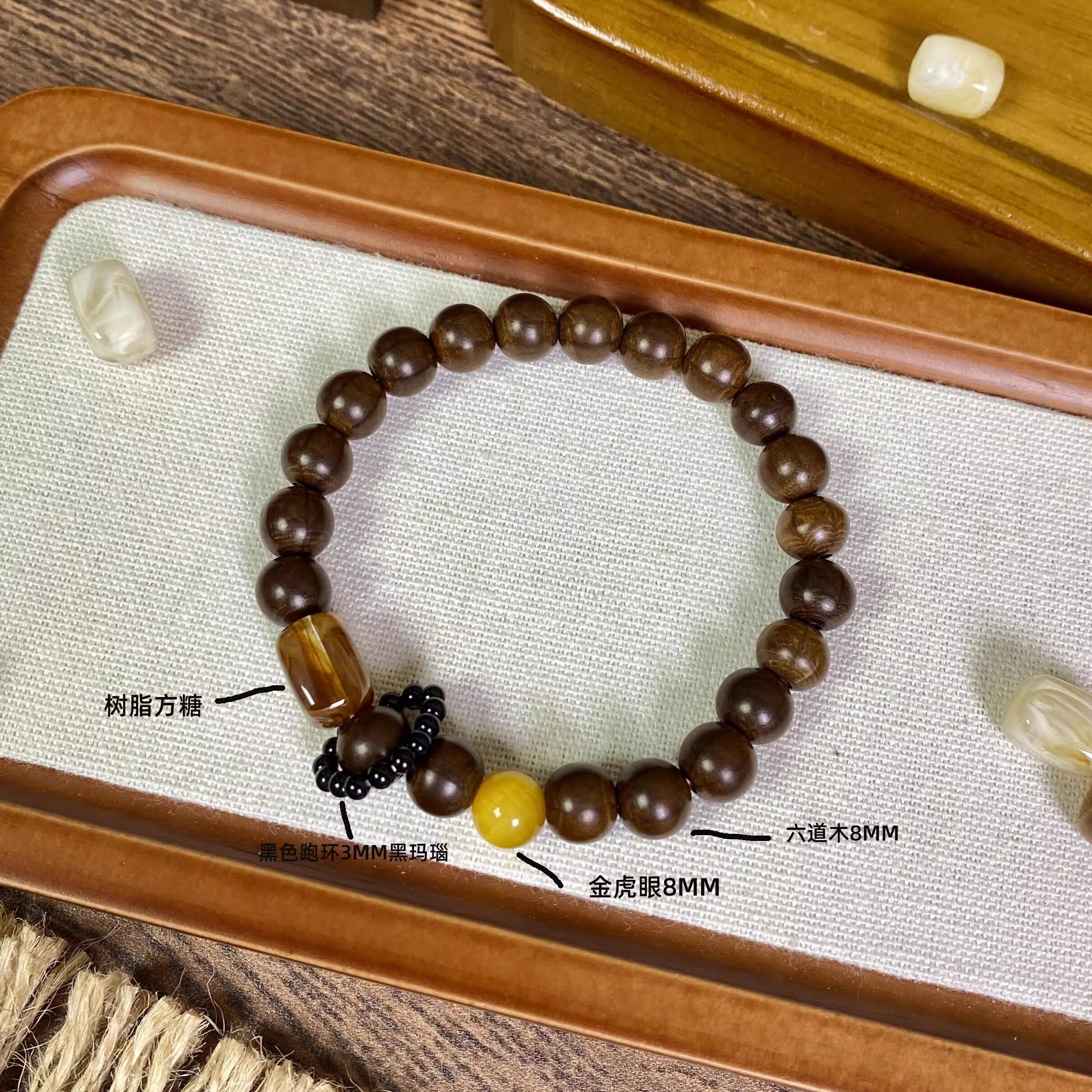 【无忧无虑】古风木质手串秋冬国风六道木玛瑙跑环文玩手串新中式