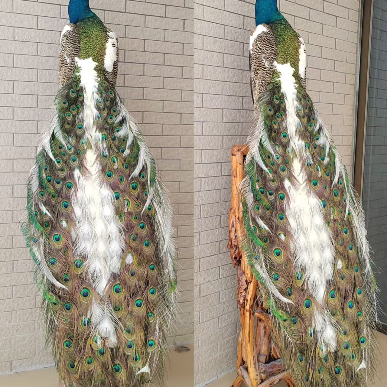 天然蓝孔雀标本 白孔雀羽毛仿真鸟标本 手工艺家居装饰品摆件道具