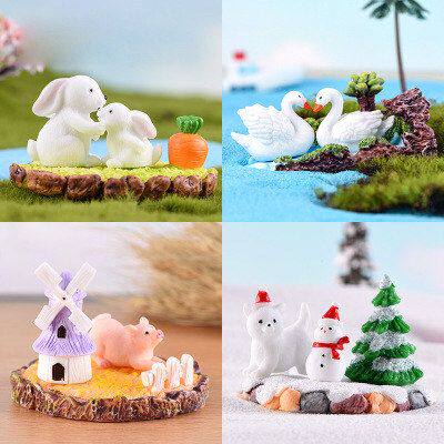 微景观摆件多肉装饰品配件迷你可爱动物三件套盲盒手办DIY材料包