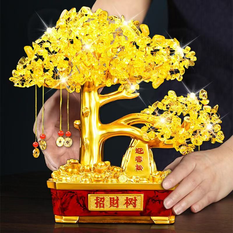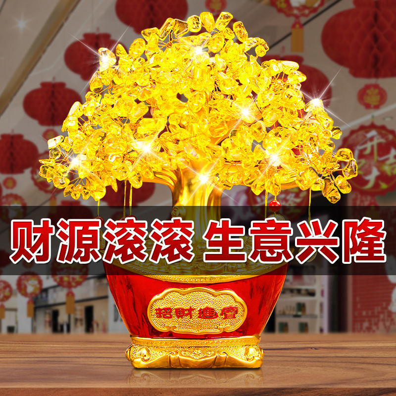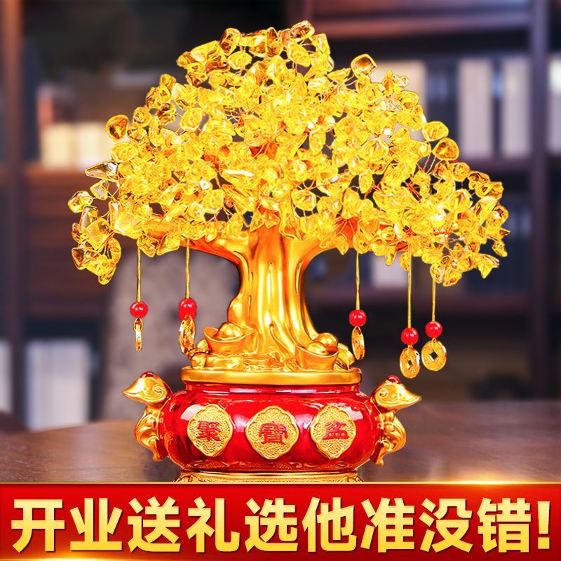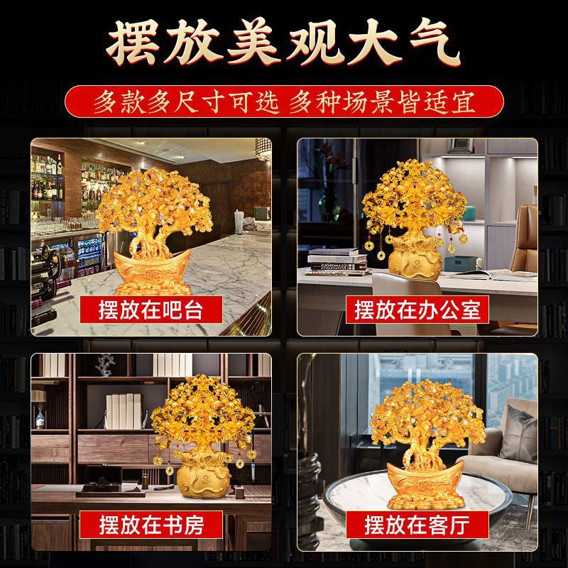 黄水晶摇钱树发财树摆件招财客厅八方来财乔迁新居店铺金元宝手工