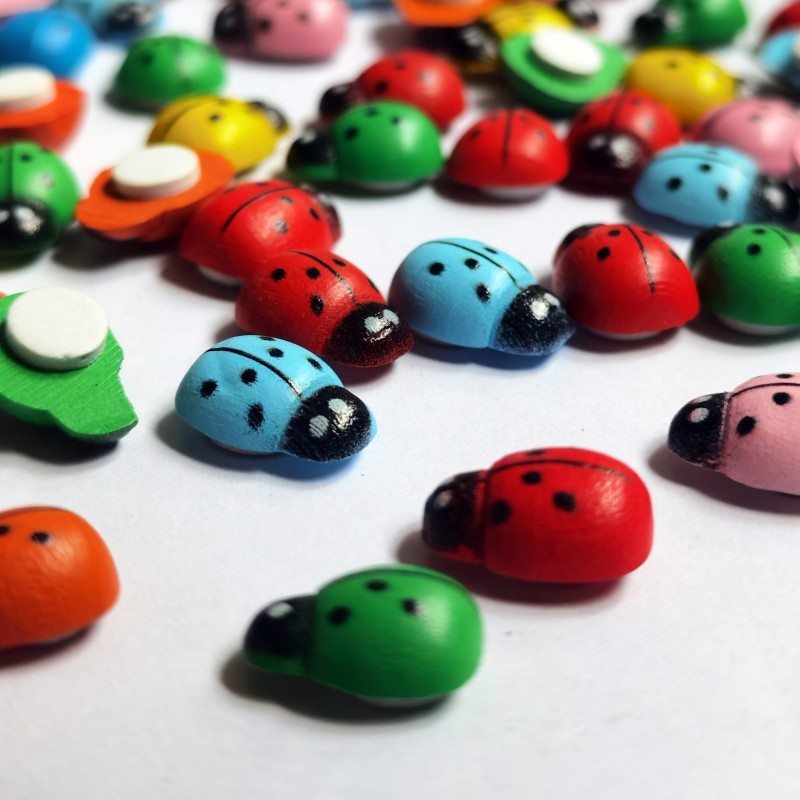 微景观七星小瓢虫摆件木质木制工艺甲壳虫假花植物盆景栽家居装饰
