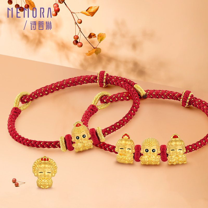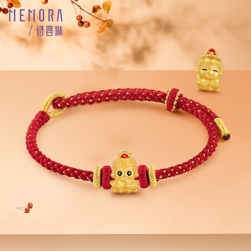 诗普琳 八大佛 5D黄金硬金足金 佛头守护串珠手链十二生肖转运珠