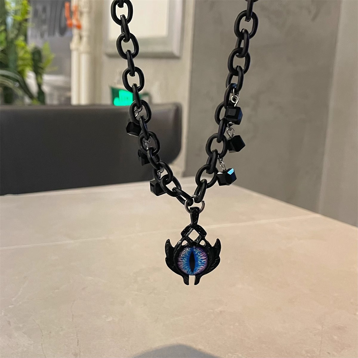 蓝色恶魔之眼项链男饰品时尚百搭朋克潮流小众简约个性锁骨链女