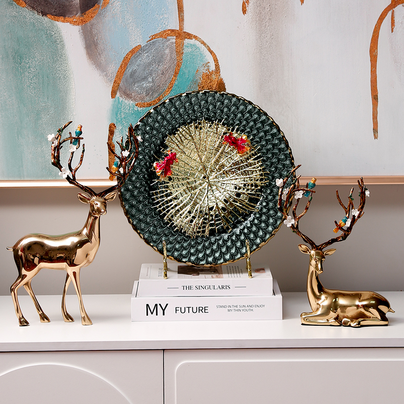 客厅样板房玄关酒店书柜博古架工艺装饰如鱼得水摆盘金属艺术摆件