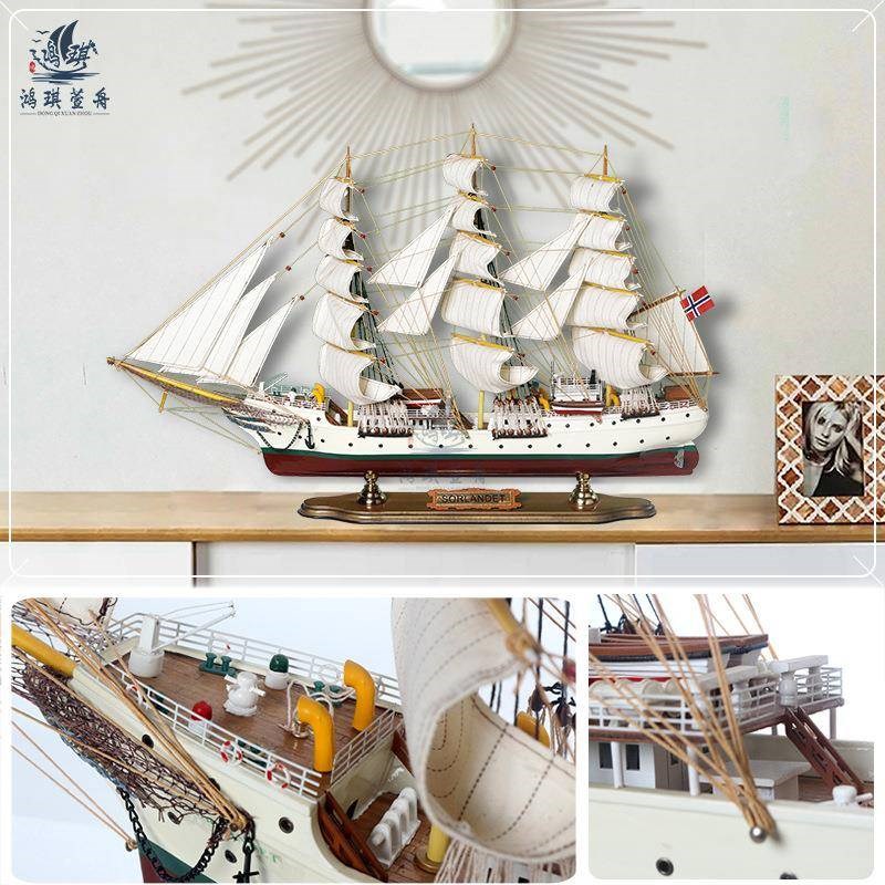 船模型摆件一帆风顺帆船摆件精w品80cm索兰德号帆船模型仿真实木