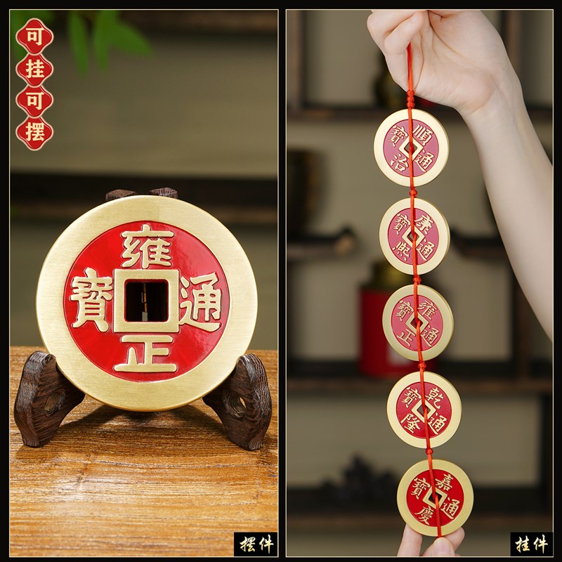 特大加厚纯黄铜真品镇库五帝钱压门槛镇宅过门石下压别墅大门挂件