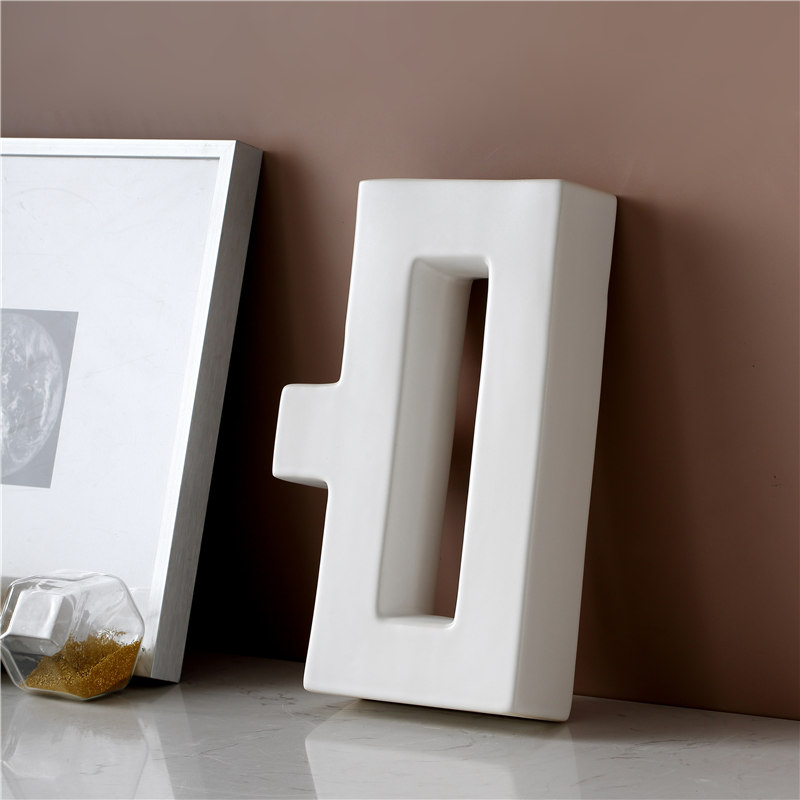 现代白色简约花瓶摆设民宿书柜软装饰品抽象创意陶瓷.工艺品摆件