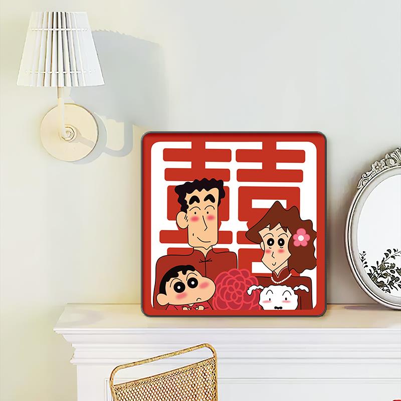 蜡笔小新结婚订婚桌面装饰小摆件婚房布置囍字房间装饰床头柜摆画