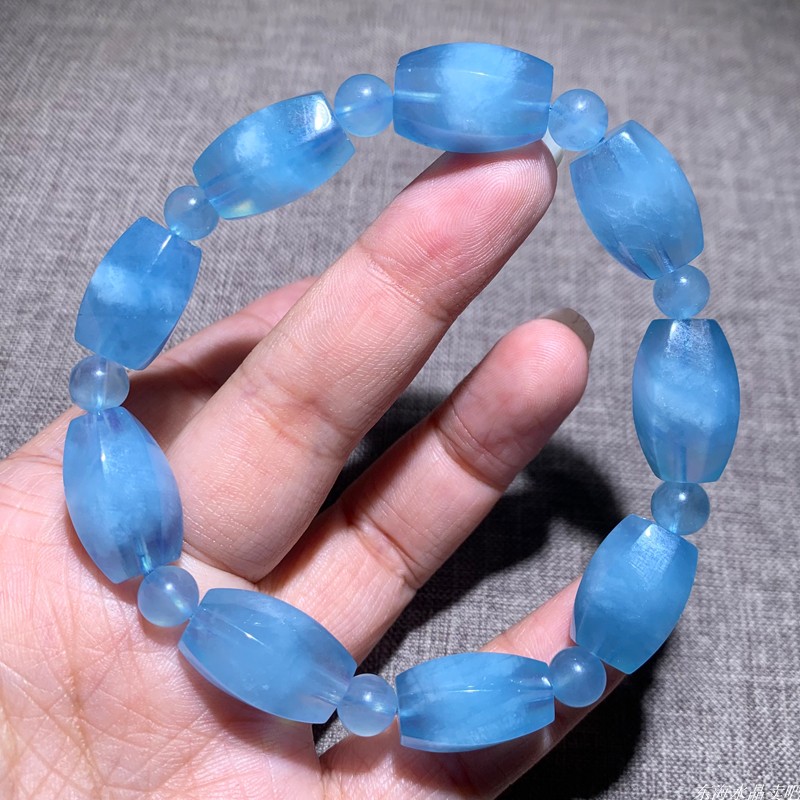 天然海蓝宝随形切面单圈手链润蓝色手串情侣水晶送礼物女一物一图