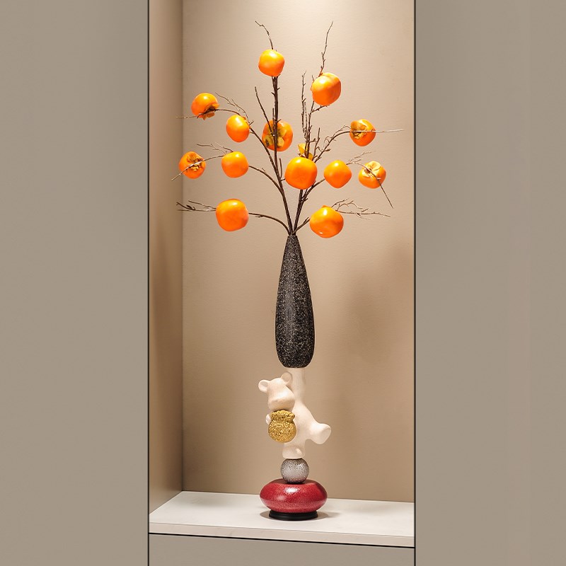 时来运转花瓶玄关摆件入户客厅电视柜红果迎客松装饰乔迁开业礼物