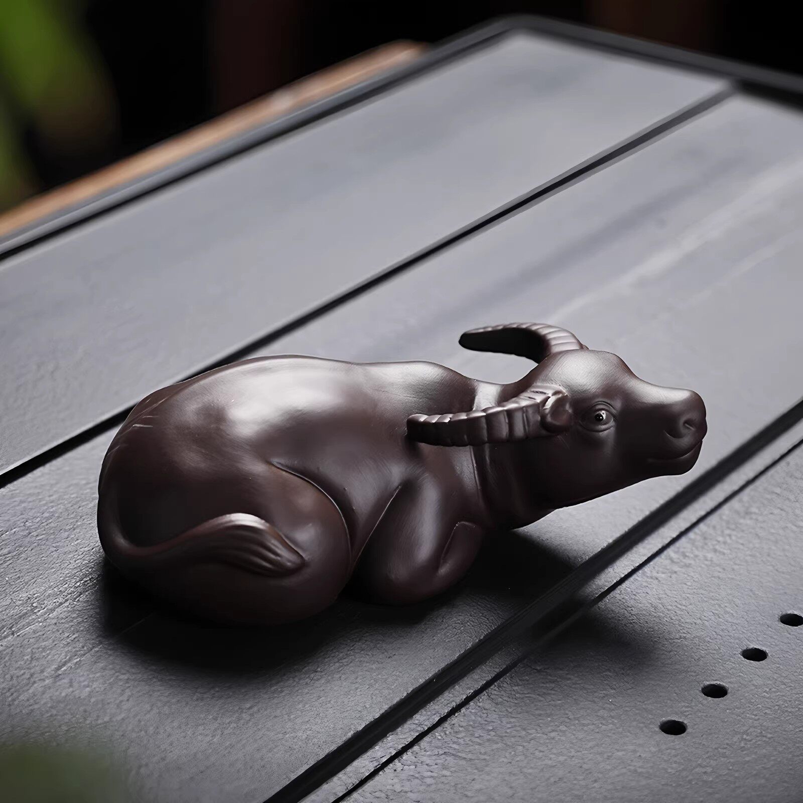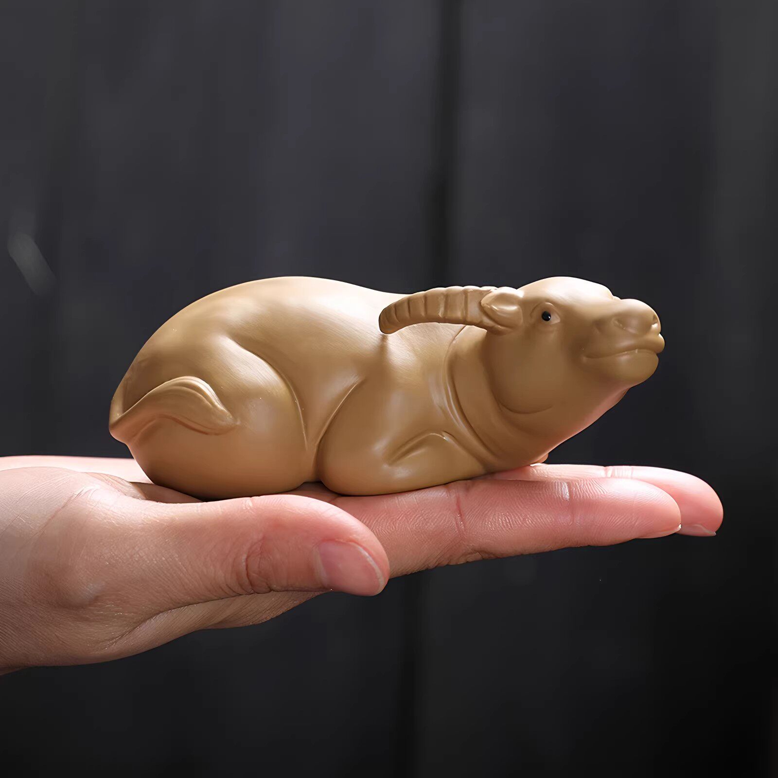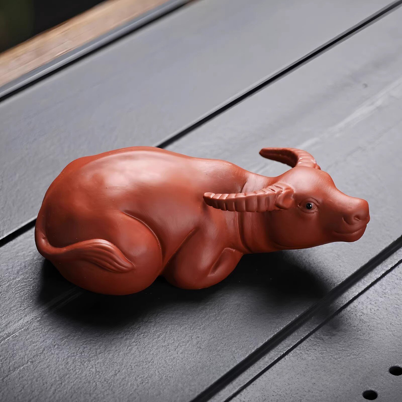 黄色陶瓷卧牛卫生间在正北西北角下水道水牛厨房厕所化解补角摆件