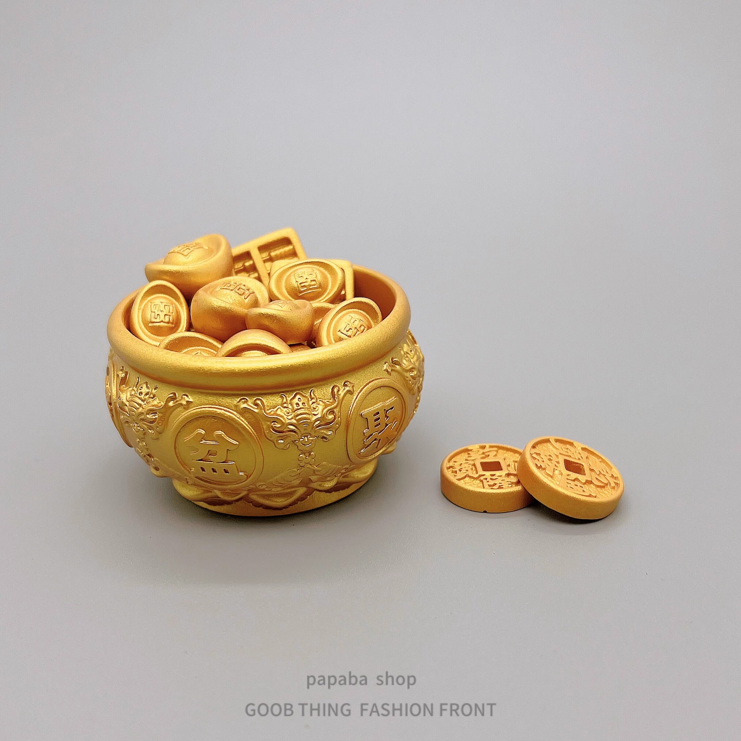 无聊了,摆个招财聚宝盆电脑桌面小摆件日式工位办公桌家居装饰