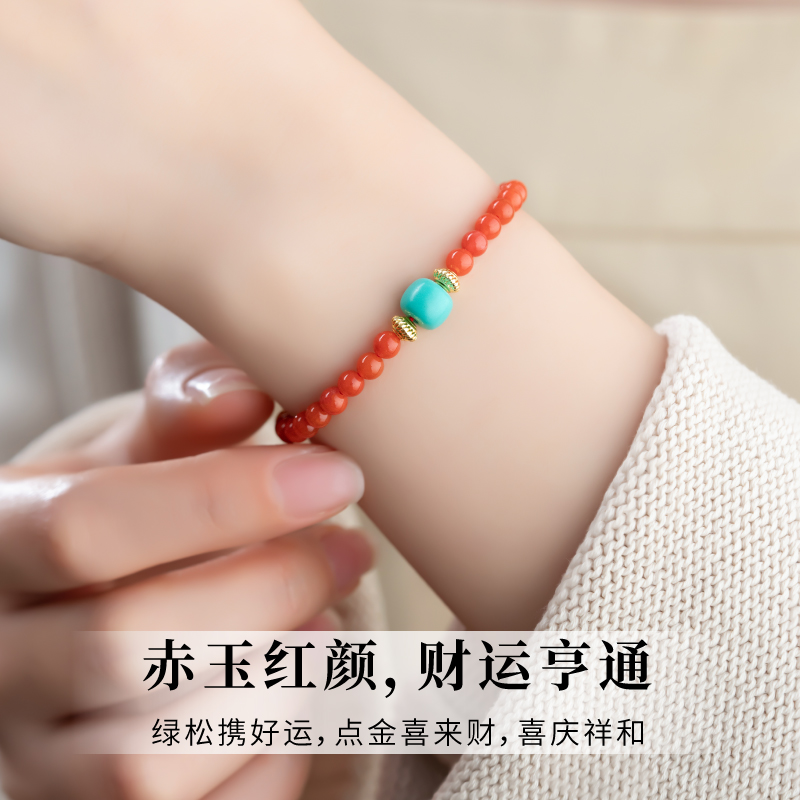 南红手串4mm小米珠绿松石手链女叠戴天然原矿红玛瑙极细红色串珠