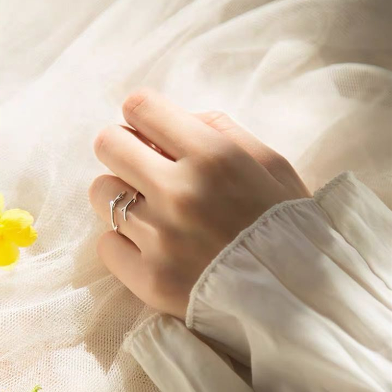 鹿角戒指女925纯银ins个性一鹿有你网红小众设计开口可调节食指戒