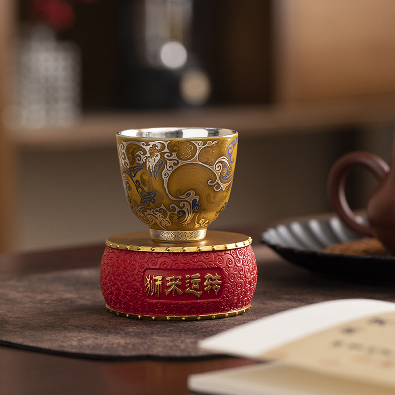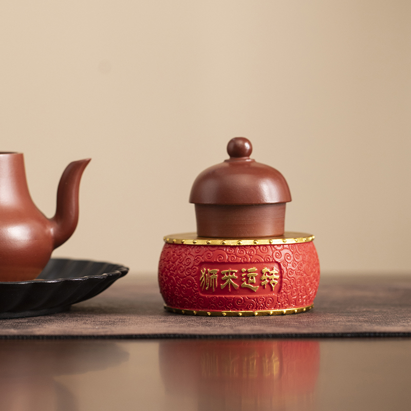 新中式国风圆形鼓摆件桌面工艺品文玩茶宠底座杯垫茶托盖置增高台