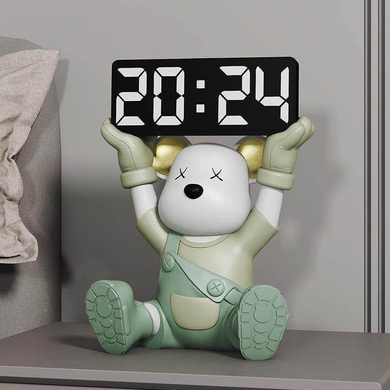 入背带熊摆件门户客厅玄装饰品SKD6082进闹钟关卧室乔迁礼品桌面
