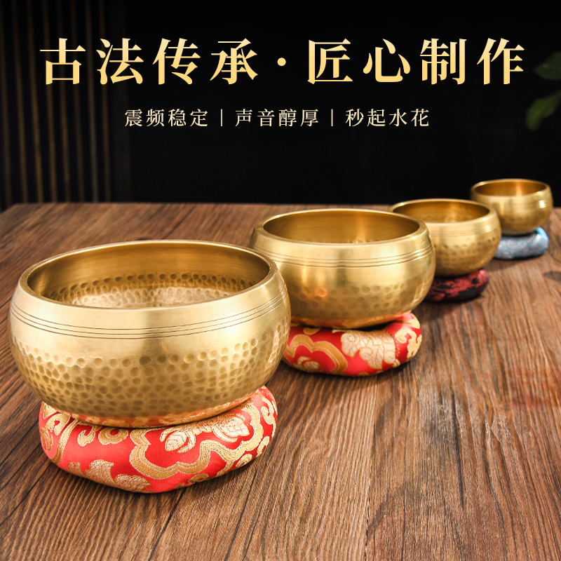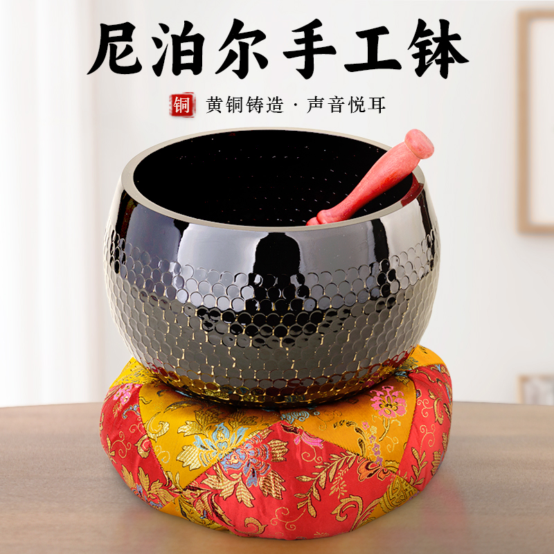 盛凡 金钵转经铜钵佛音碗尼泊尔手工静心钵音疗颂钵修行碗铜磬