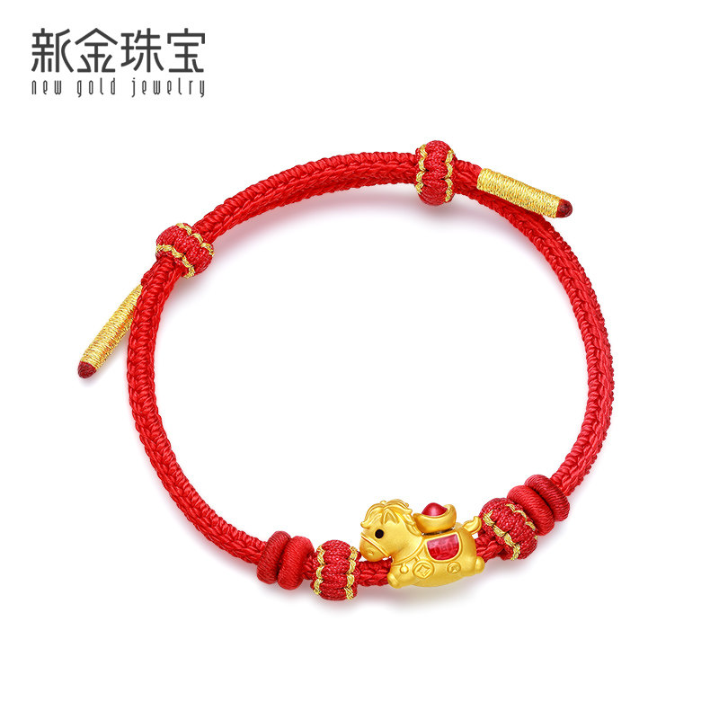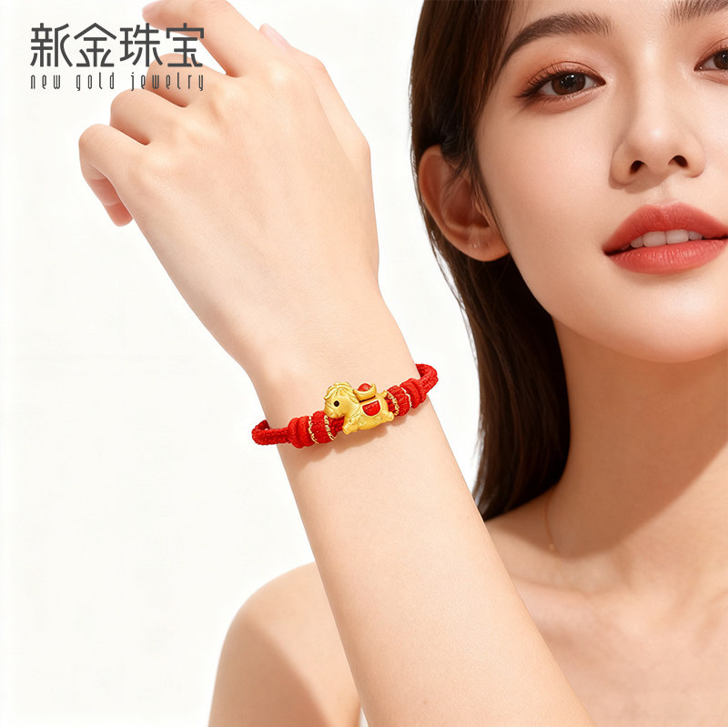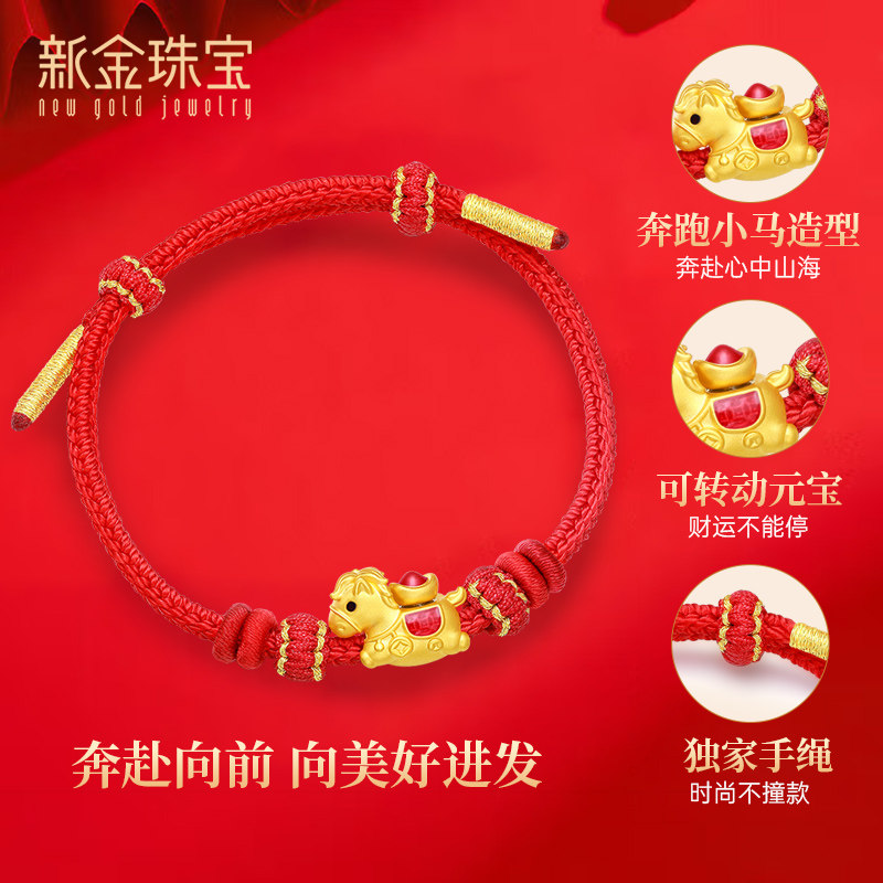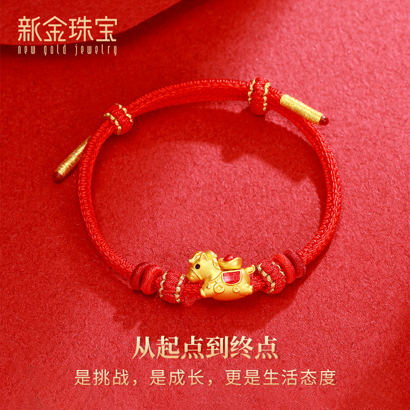 新金珠宝马上有钱黄金手绳武汉女子半马联名马年转运珠足金手链女