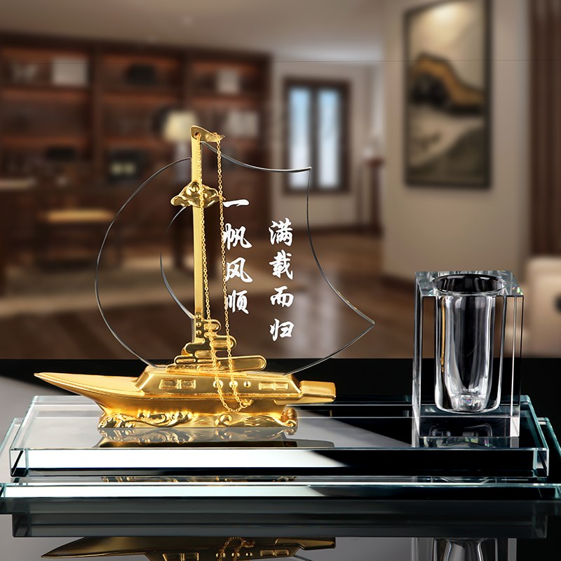 乔迁礼物送朋友亲人一帆风顺w桌面摆件礼盒办公室水晶笔筒装饰礼
