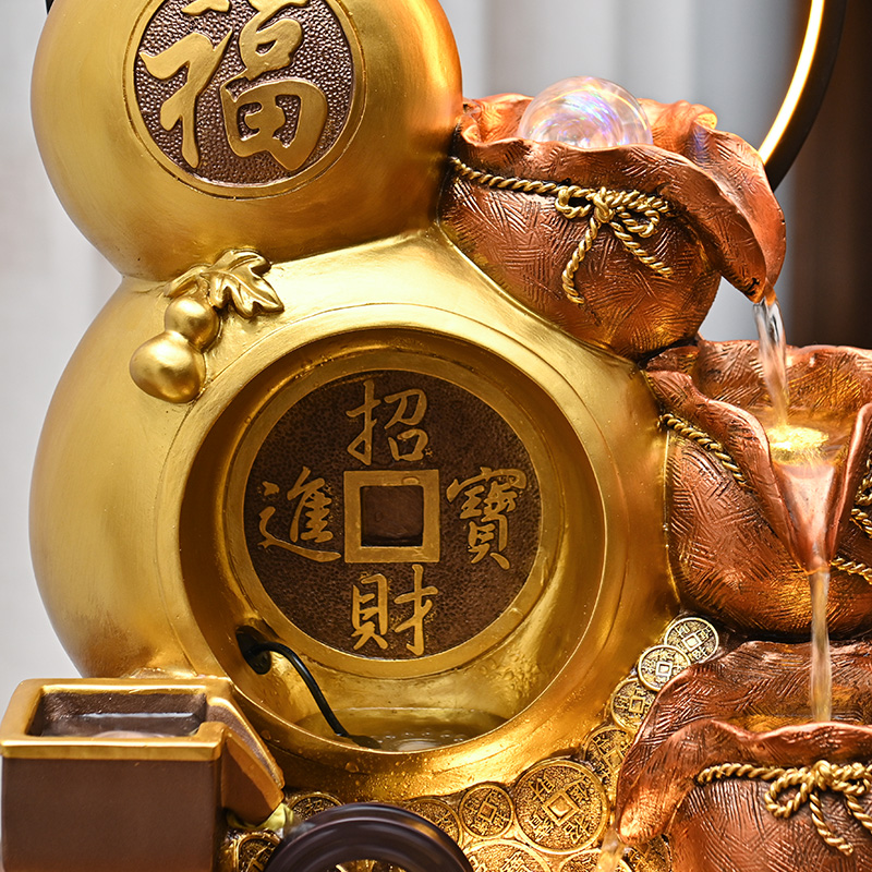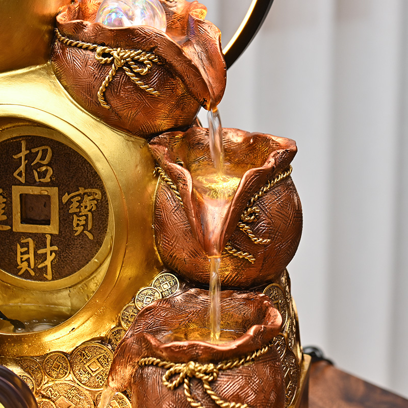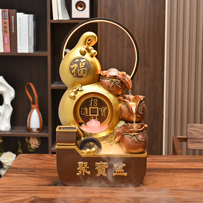 招财福禄流水摆件循环水聚宝盆客厅玄关办公室风水轮乔迁开业礼物