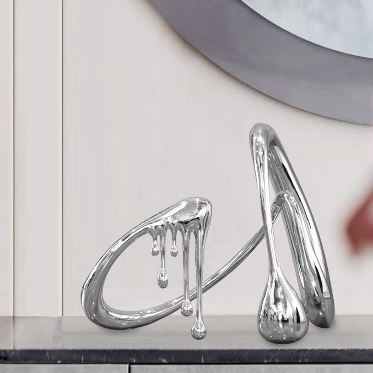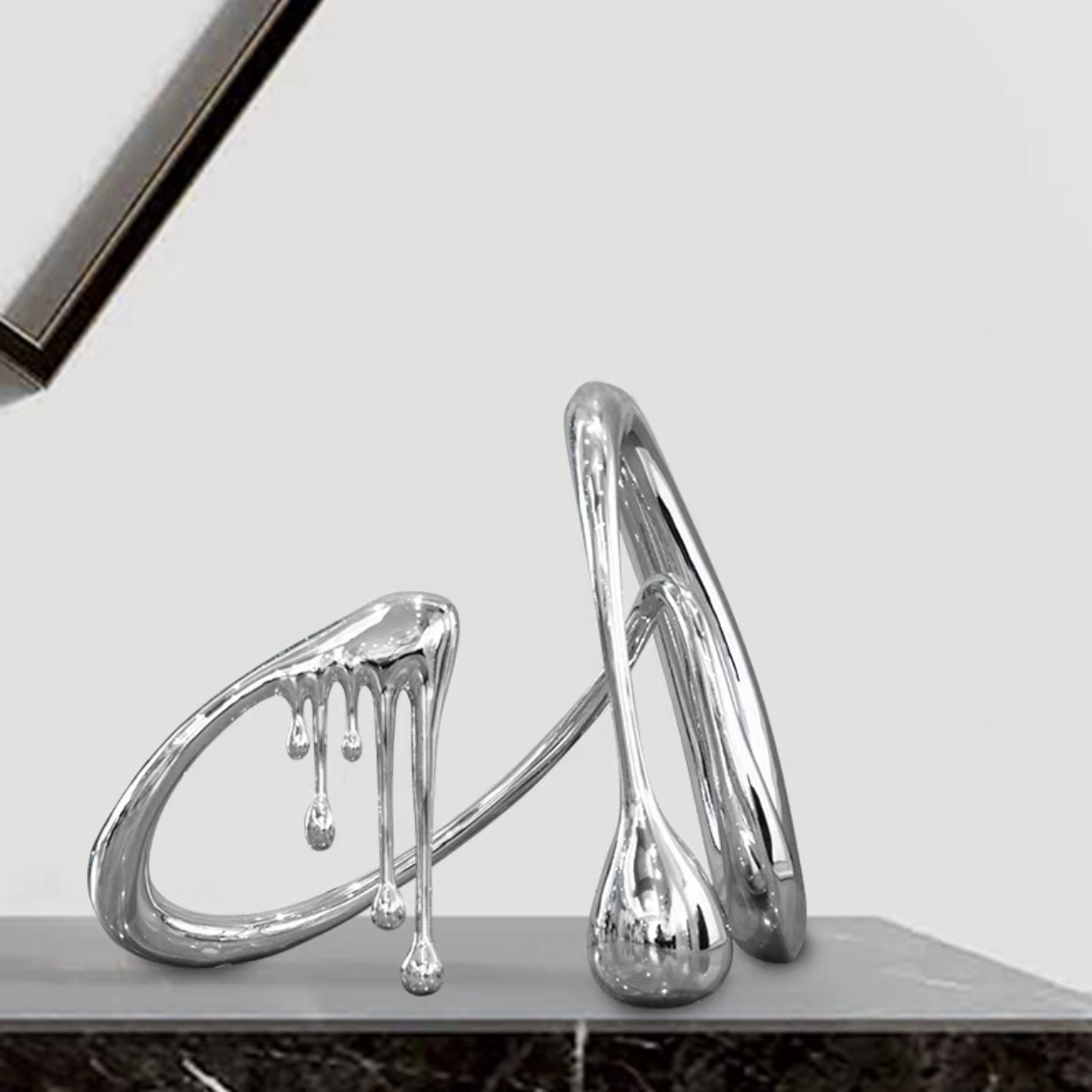 现代抽象水滴电镀流体摆设样板间书房售楼部客厅轻奢风装饰品摆件
